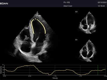 El EDAN Acclarix LX9 incorpora herramientas inteligentes que agilizan cada examen: eTouch para control por gestos, eOptimized para mejorar la imagen con un solo toque, y eVolume para cálculos automáticos.