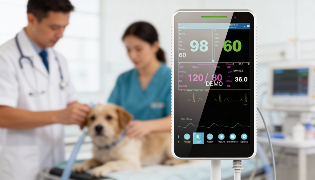 Diseñado específicamente para el ámbito veterinario, el monitor M9 mide parámetros como SpO₂, NIBP, TEMP, ECG y frecuencia respiratoria, con rangos ajustados para animales grandes y pequeños.